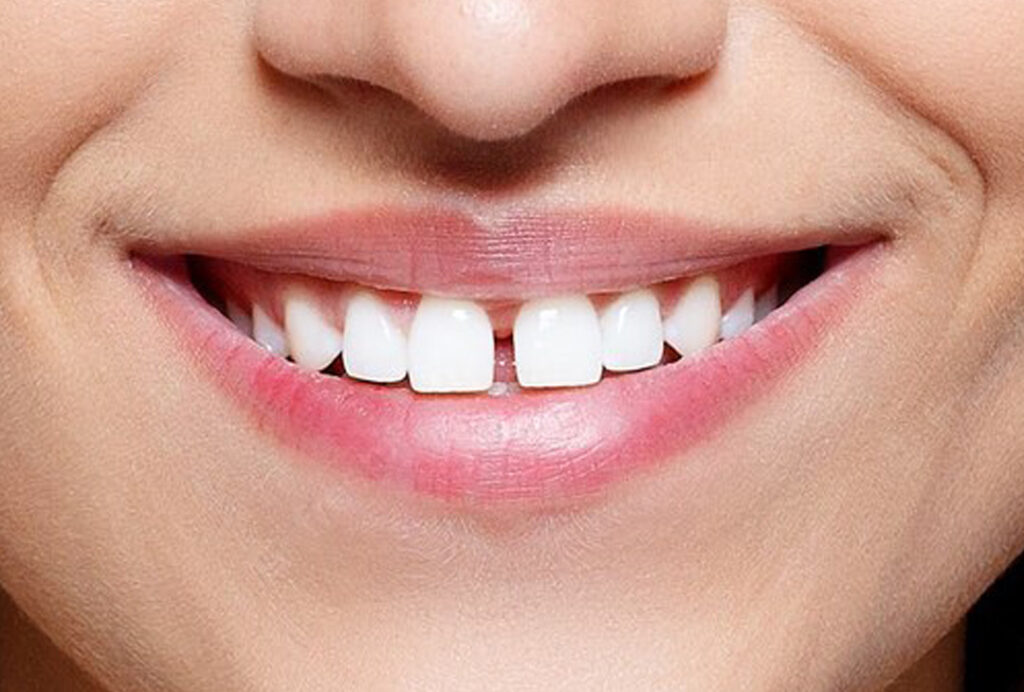 Lo spazio tra i denti è detto diastema. L’arcata dentale presenta molto spazio vuoto in eccesso, di conseguenza i denti sono eccessivamente distanziati l’uno dall’altro.